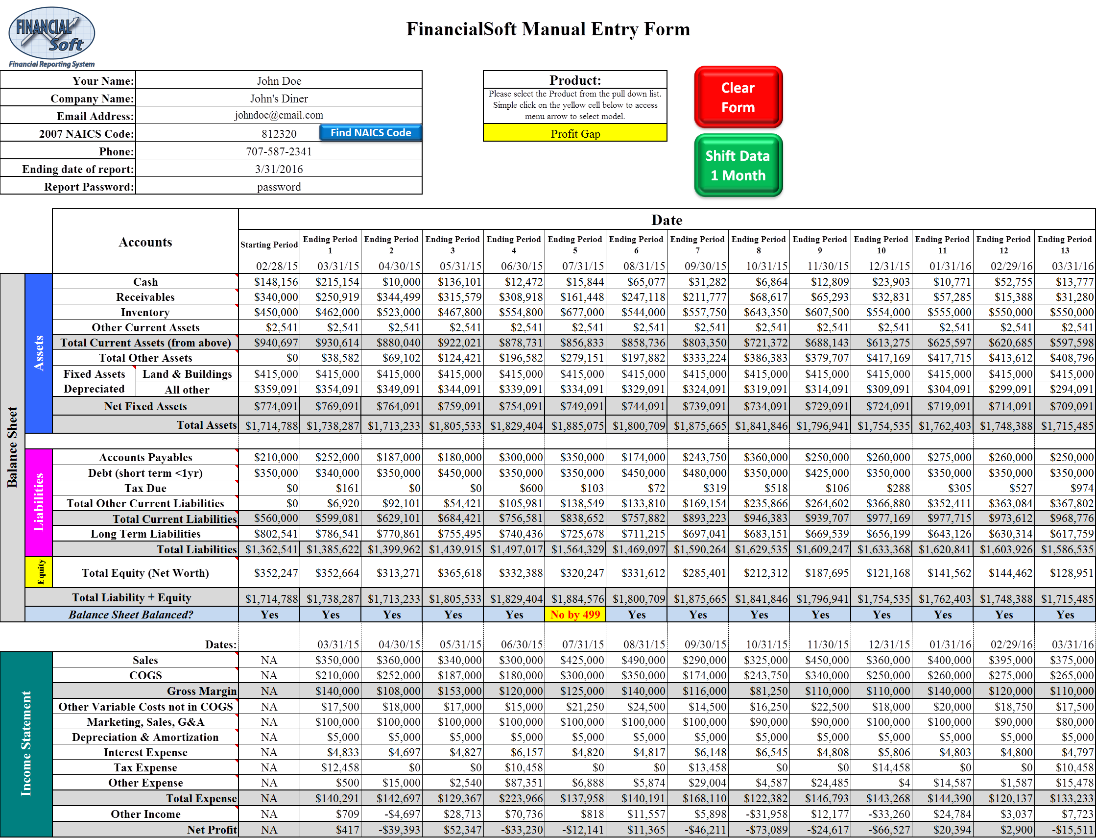 When you have completed entering the data, save the file then email it to us at support@financialsoft.biz for processing.